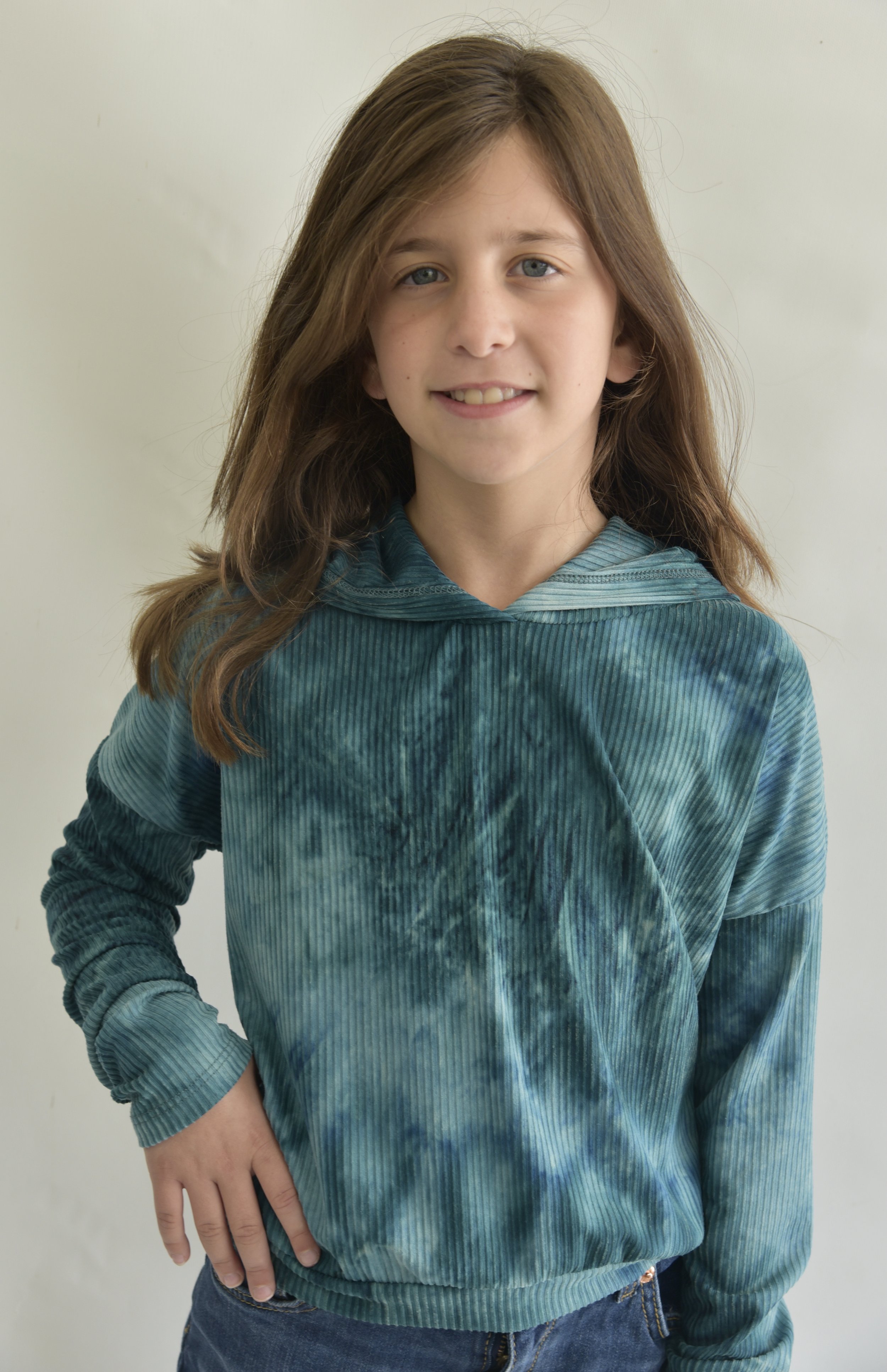 Teal Tie Dye Rib Side Tie Up Top & Teal Tie Dye Rib Hoodie