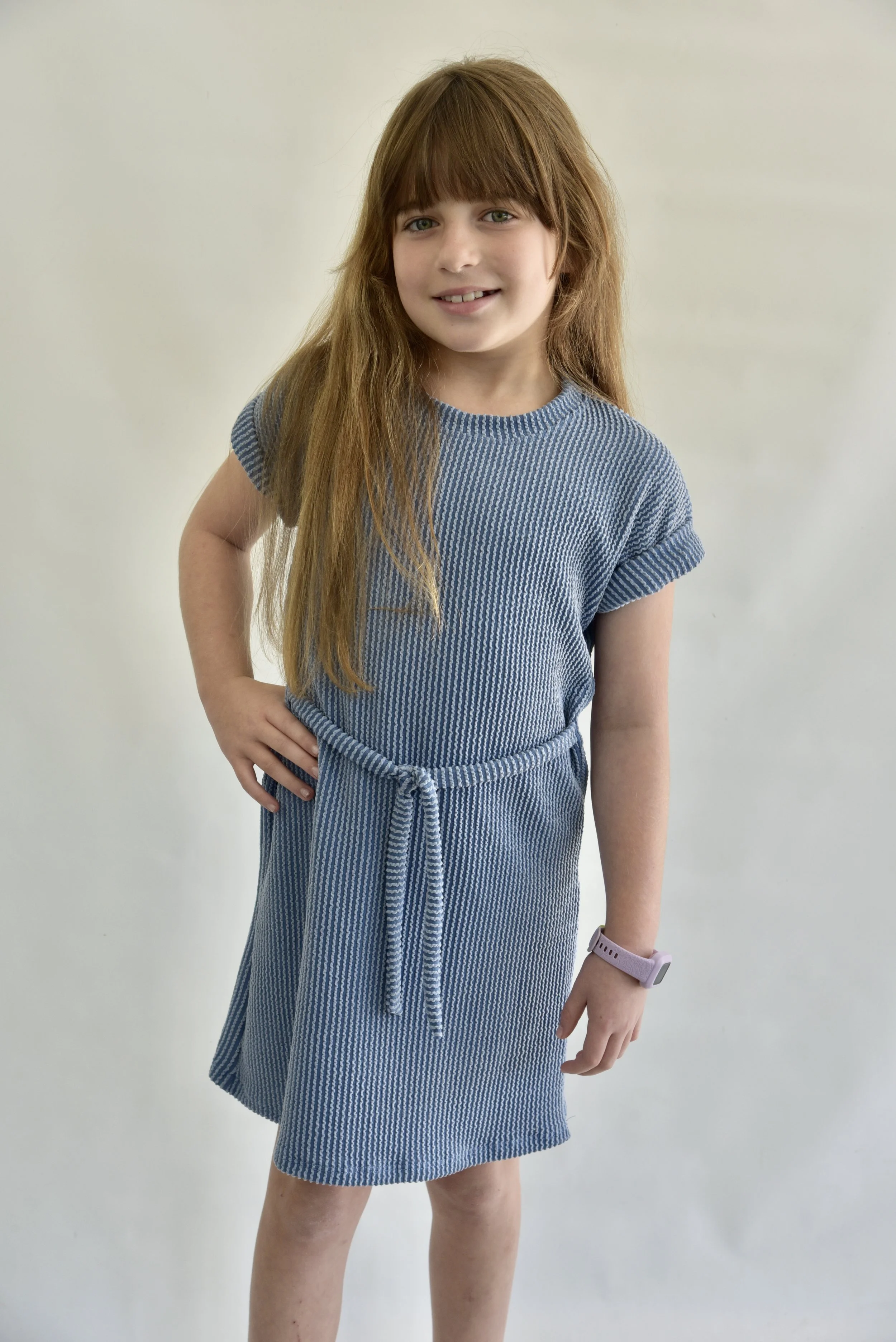 Blue Twisted Rib SS Drop Shoulder Dress / Tie Belt