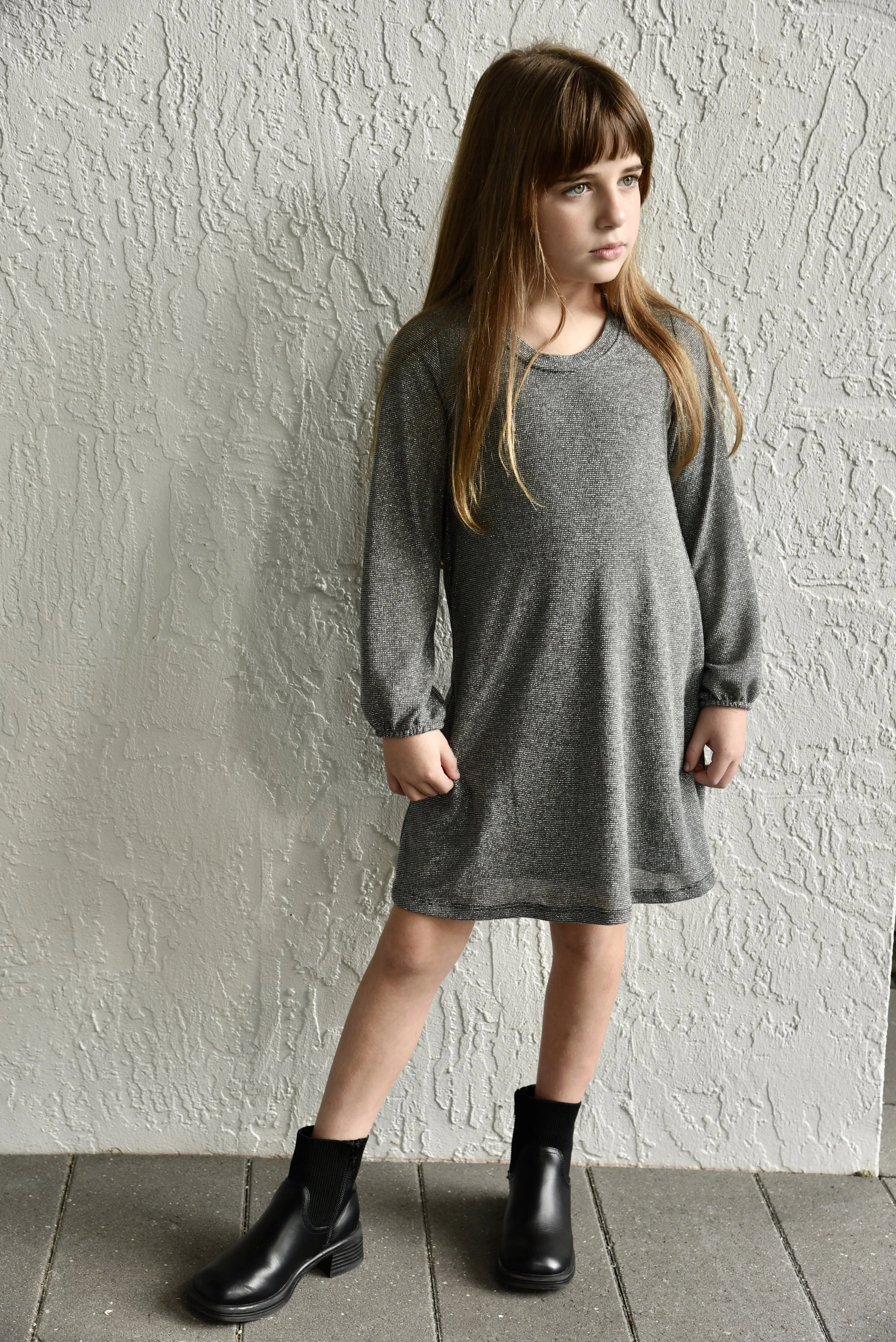 Charcoal Grey Metallic Shimmer A-Line Dress